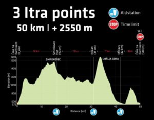 When we reach Krnes, the path towards the summit of Smrekovec flattens out again, and here the runners from the 100km route also join, continuing together towards the home stretch on Smrekovec, where pasta and pizza await you. This is followed by a descent towards Kramarca and a beautiful forest path towards Slemen. From Slemen, the path on gravel leads to Križan, where another refreshment station awaits you with the best pancakes to help you tackle the ascent to Mount Uršlja Gora, which is located at 1699 meters above sea level and is the highest point on the trail. This is followed by a descent towards Žerjav, where locals welcome you with an accordion and plenty of good cheer, accompanying you through the final ascent, which is known among locals and on Strava as “why do we have to do this.”